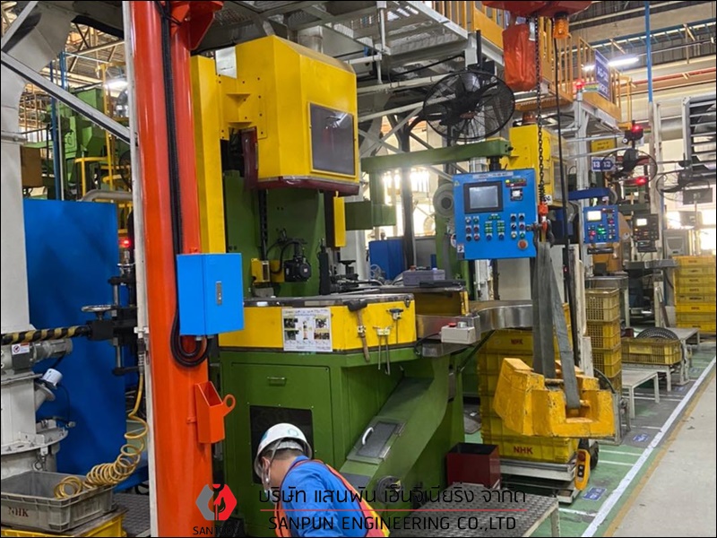 เครนเหนือศีรษะแบบคานเดี่ยว ติดตั้งเครนเหนือศีรษะแบบคานเดี่ยว เครนโรงงานแบบคานเดี่ยว Single Girder Overhead Crane เครนเหนือศีรษะแบบคานเดี่ยว หรือ เครนโรงงานแบบคานเดี่ยว หรือ Single Girder Overhead Crane เหมาะสำหรับโรงงานอุตสาหกรรมที่ต้องการยกน้ำหนักไม่มากนัก คานและรางตั้งอยู่บนเสาอาคาร ตัวเครนตั้งอยู่บนอาคาร สามารถใช้งานได้มากถึง 6 ทิศทาง คือ ซ้าย - ขวา, หน้า - หลัง, บน - ล่าง ตัวรอกวิ่งอยู่ใต้คาน คุณสมบัติและลักษณะเด่นของเครนเหนือศีรษะ แบบคานเดี่ยว มีน้ำหนักยกตั้งแต่ 1 ton ถึง 12.5 ton หรือ 1,000 kg ถึง 12,500 kg มีความกว้างในการใช้งานตั้งแต่ 6 - 25 เมตร สามารถยกวัตถุเคลื่อนที่ชิดซ้าย - ขวาได้มากขึ้น ประโยชน์ในการนำไปใช้ สำหรับเครนเหนือศีรษะ แบบคานเดี่ยว โครงสร้างตัวเครนมีน้ำหนักเบา ใช้พลังงานน้อยการปฏิบัติงาน มีรอก (Hoist) ที่ออกแบบและผลิตเป็นมาตรฐานรุ่นต่างๆ สำหรับเครนเหนือศีรษะ แบบคานเดี่ยวอยู่แล้วสำหรับแขวนประกอบกับเครนชนิดนี้ บริษัท แสนพัน เอ็นจิเนียริ่ง จำกัด ผู้ผลิตและติดตั้งเครนโรงงานทุกชนิด ต้องการสอบถามหรือขอคำแนะนำได้ที่ Tel : 098-5291909